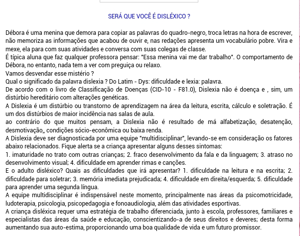 DIFICULDADE DE APRENDIZAGEM / DISCALCULIA-DISGRAFIA-DISLEXIA